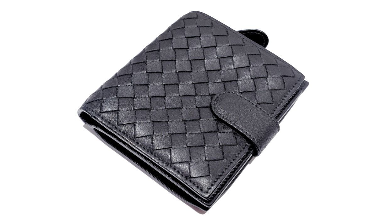 ◎丁寧に編まれたイントレチャートが特徴的なBOTTEGA VENETA ボッテガ ヴェネタの二つ折り財布です。