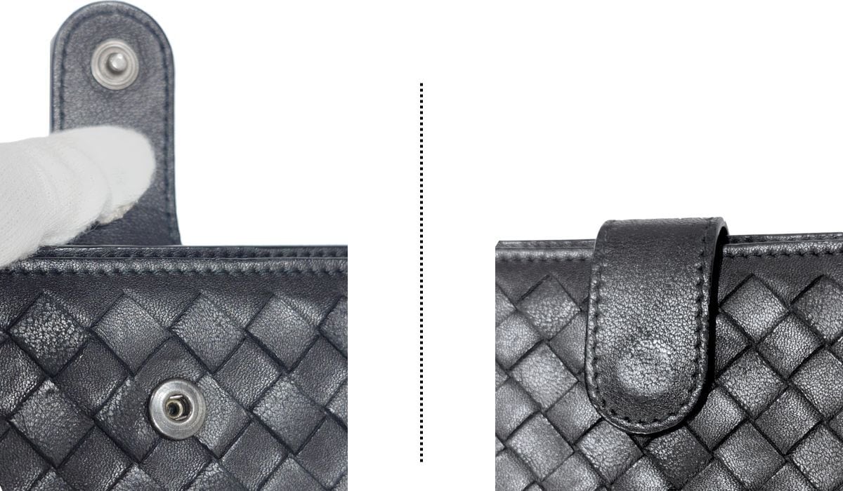 ・内側レザーに軽微なスレ・シワ、カードの押し跡、ホックの押し跡があります。汚れや変色、大きなキズはありません。