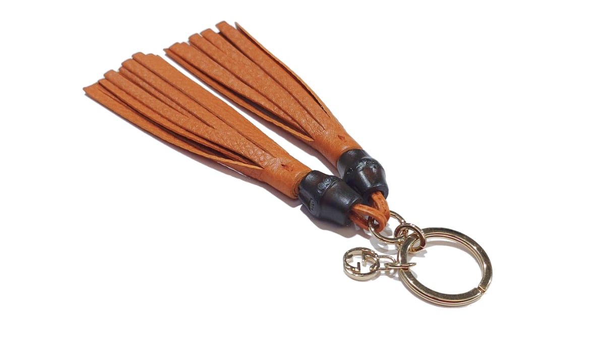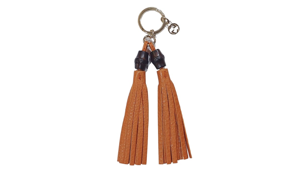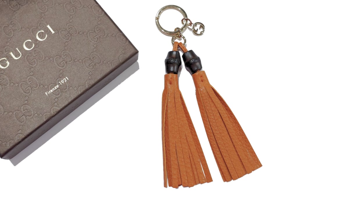 GUCCI グッチ バンブー レザー ダブル タッセル フリンジ キーホルダー キーリング チャーム インターロッキングG ライトブラウン