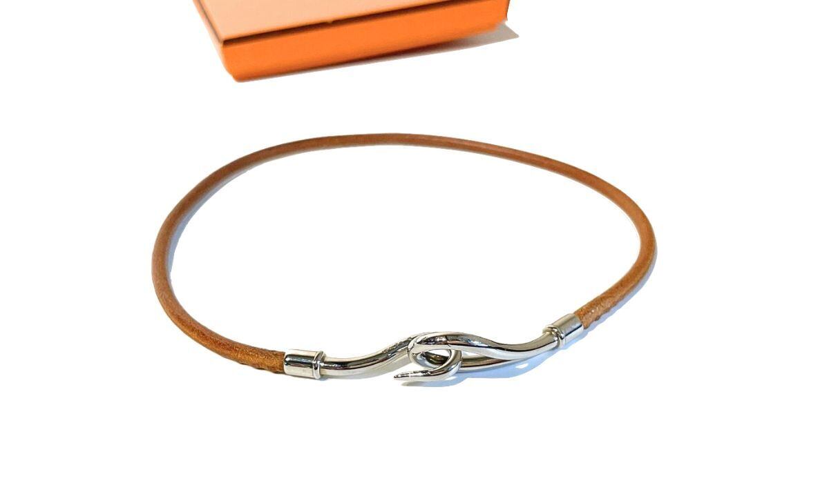 HERMES エルメス ジャンボチョーカー ブレスレット 二重巻き ブラウン レザー シルバー金具